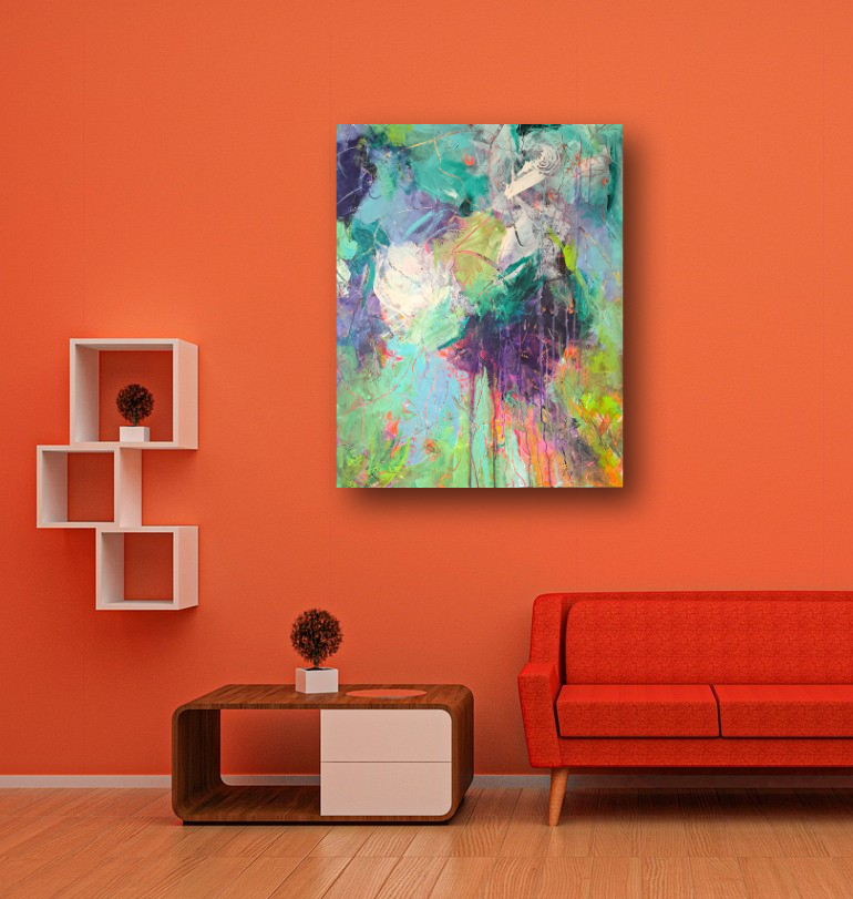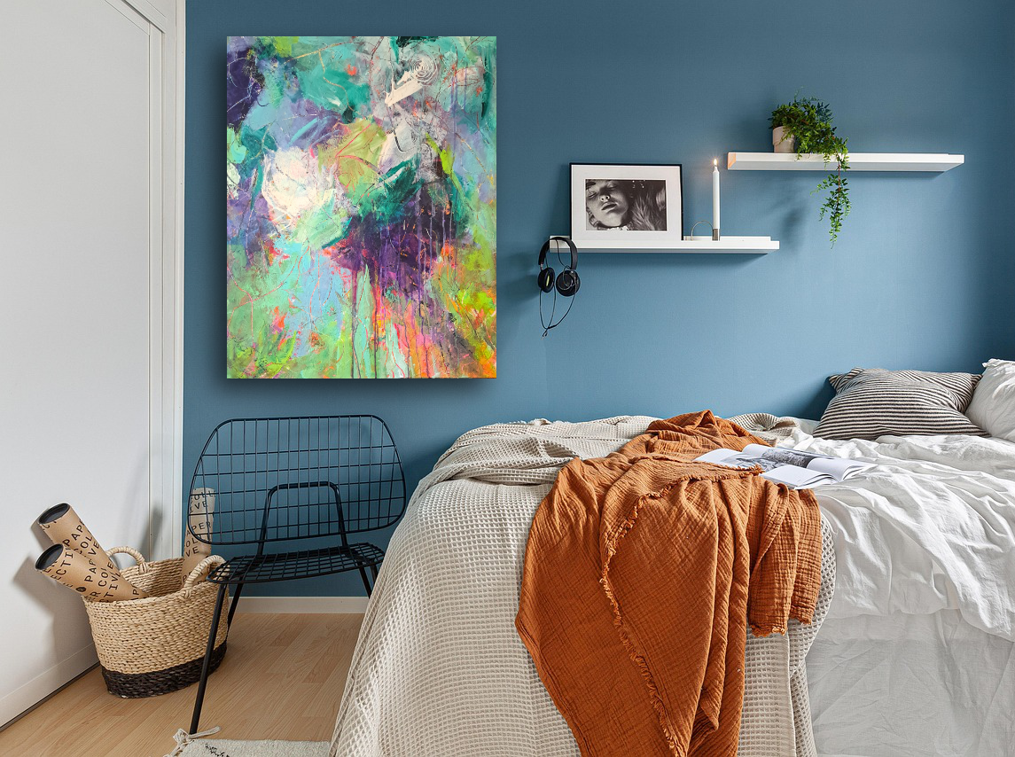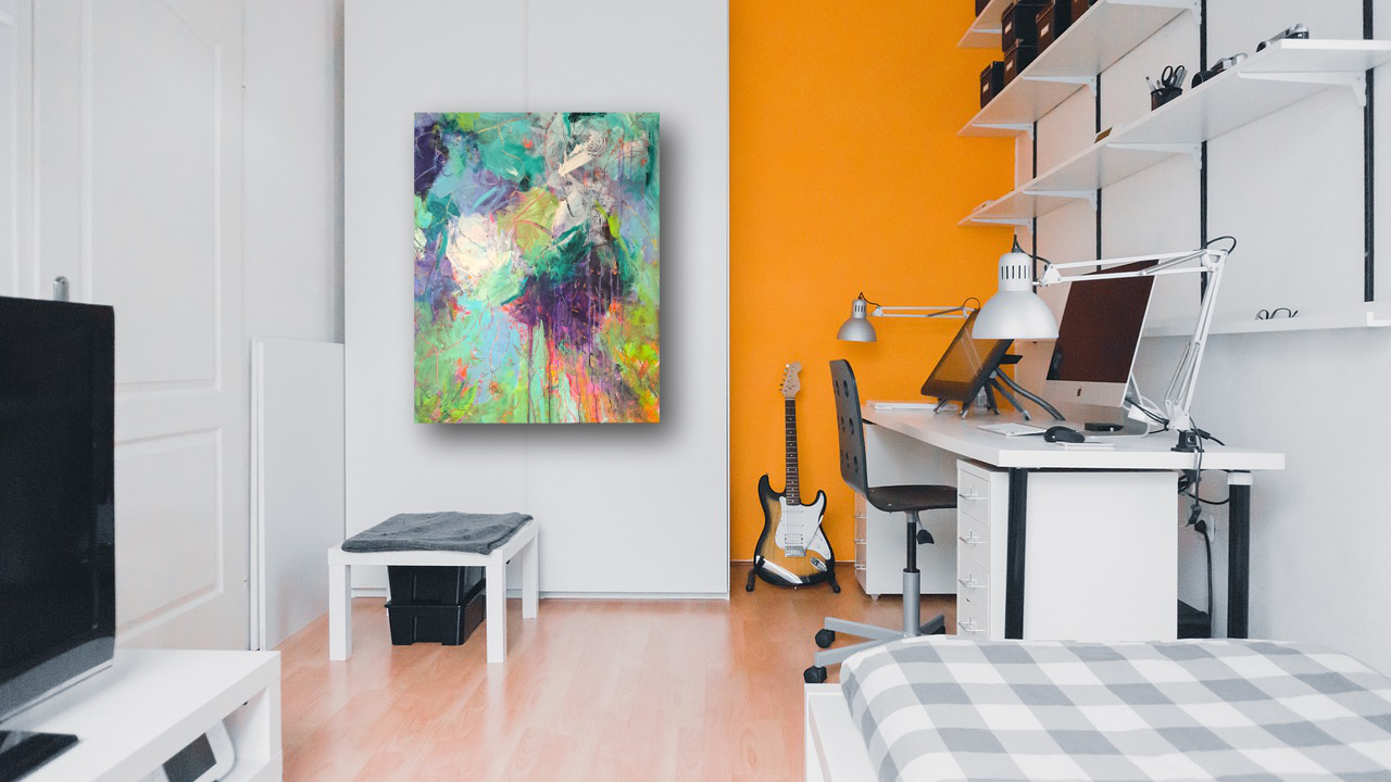Acryl, Ölpastell, Mixed Media auf Leinwand, u.a. Neon